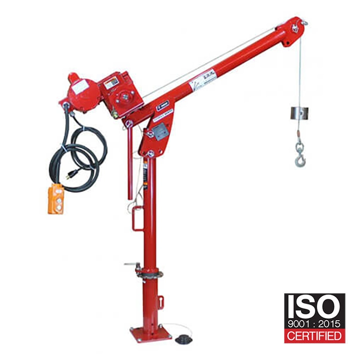 With load capacities up to 850 lbs., the First Mate Davit Crane is perfect for a wide variety of simple jobs where adjustable reach is not required. Lightweight, economical davit crane can be configured with a spur gear or worm gear hand winch for short, less frequent lifts or with a power winch for longer, more regular lifting. This versatile davit crane is simple to set up and transport. Pedestal, wall and flush mount bases are easily installed on floor slabs, trucks, boats, docks or other solid surfaces with just four anchor bolts.
